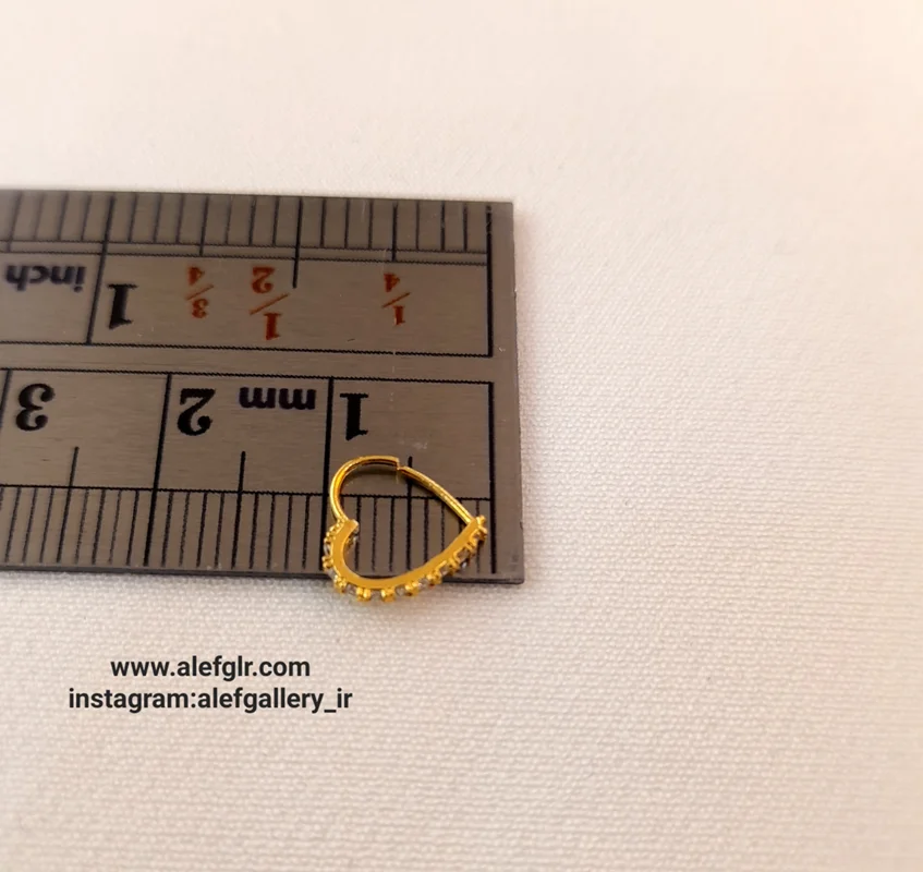 جنس این پیرسینگ بینی نقره 925 عیار است که از بالاترین عیار نقره است و نیز همراه با آبکاری طلا میباشد. پیرسینگ حلقه ای بینی کاری بسیار زیبا است که باید حتما آن را امتحان کنید. نقره بودن این پیرسینگ موجب انعطاف آن شده که باعث میشود راحت تر روی بینی قرار گیرد و اذیت کننده نباشد. این پیرسینگ بینی با نگین هایی که در آن کار شده و طرح قلبی که دارد جلوه ای زیبا را به صورت شما میبخشد. فروشگاه اکسسوری الف منبع پیرسینگ های بینی حلقه ای میباشد و دارای بالاترین تنوع در این زمینه میباشد. همچنین میتوانید مارا در اینستاگرام نیز دنبال کنید alefgallery-ir.