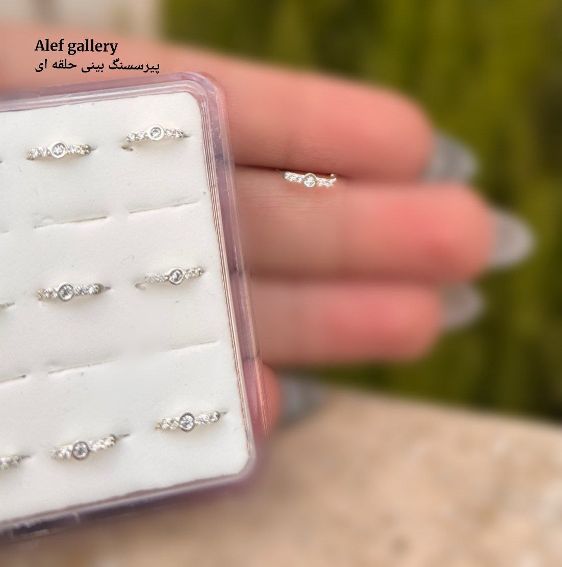 پیرسینگ حلقه ای بینی نقره نگین دار || خرید انلاین