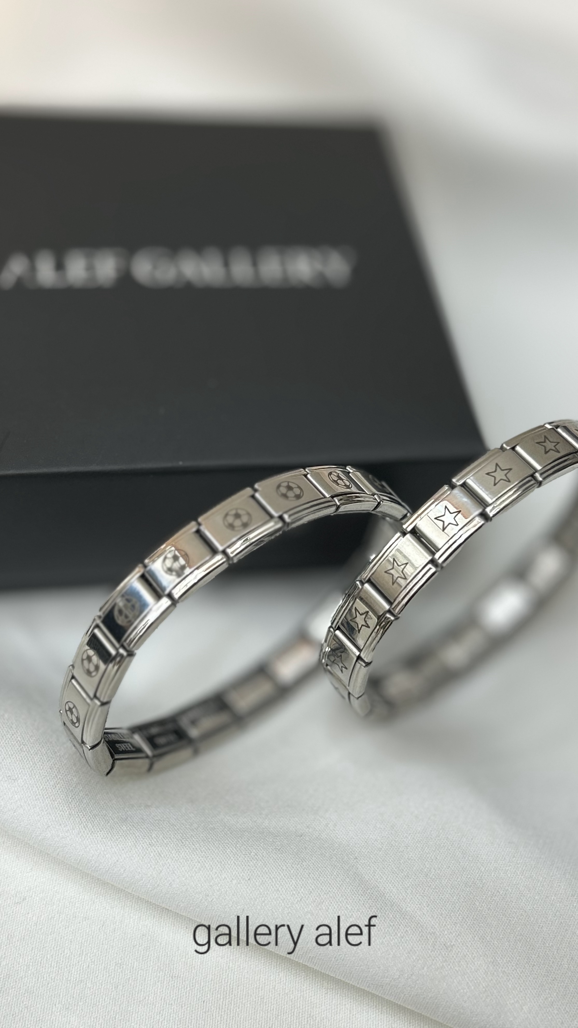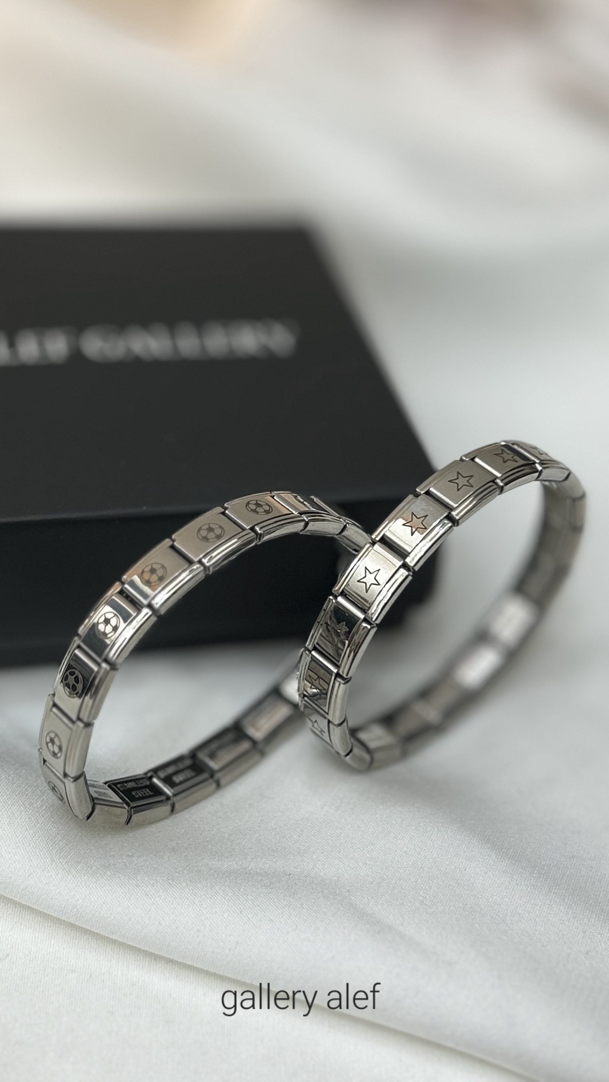 جنس کار تمام استیل و مناسب استفاده دائم .هر مدل از این دستبندا به صورت کامل ستاره و توپ فوتبال کار شده است.