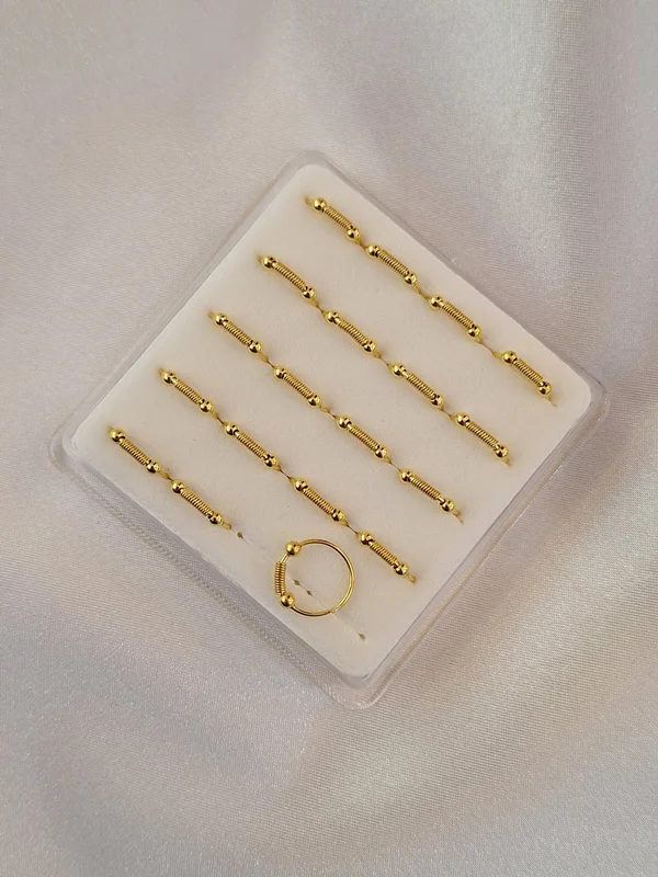 جنس این پیرسینگ بینی نقره 925 عیار است که از بالاترین عیار نقره است و نیز همراه با آبکاری طلا میباشد. پیرسینگ حلقه ای بینی کاری بسیار زیبا است که باید حتما آن را امتحان کنید. نقره بودن این پیرسینگ موجب انعطاف آن شده که باعث میشود راحت تر روی بینی قرار گیرد و اذیت کننده نباشد. این پیرسینگ بینی با گوی هایی که روی آن قرار گرفته است و شیار هایی که بین این دو گوی قرار دارد جلوه ای زیبا را به صورت شما میبخشد. فروشگاه اکسسوری الف منبع پیرسینگ های بینی حلقه ای و میخی میباشد و دارای بالاترین تنوع در این زمینه میباشد. همچنین میتوانید مارا در اینستاگرام نیز دنبال کنید alefgallery-ir. برای دیدن تنوع بیشتر به اسلاید های دیگر ما درسایت مراجعه فرمایید.
