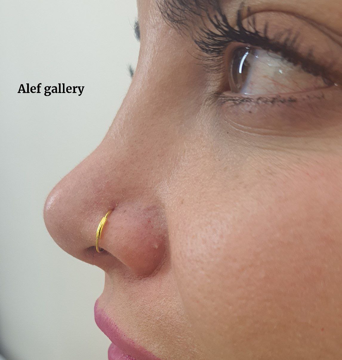 جنس کار نقره 925 است (بالا ترین عیار نقره) و همراه با آبکاری طلا است. این پرسینگ حلقه ای بینی ساده و در عین حال شیک است و اگر به رنگ طلایی علاقه دارید یکی از بهترین گزینه ها برای شما همین پرسینگ حلقه ای بینی است.مجموعه ما دارای تنوع زیادی در پرسینگ های بینی چه حلقه ای و چه میخی میباشد و میتوانید در سایت و پیجمون تنوع را مشاهده کنیدALEFGALLERY_IR . ارسال سفارش های بالا تر از 235 هزار تومان رایگان است.