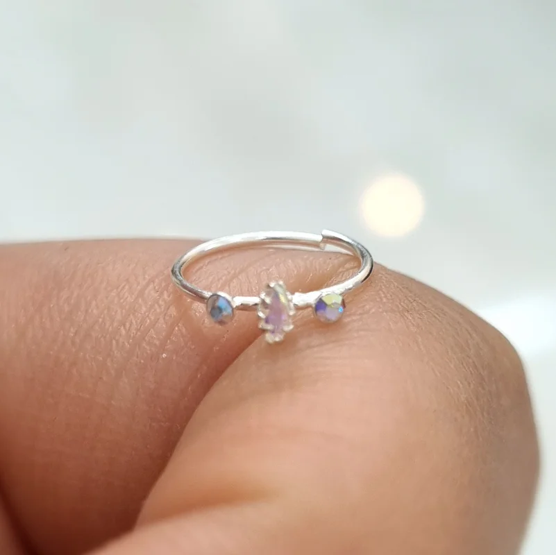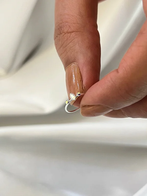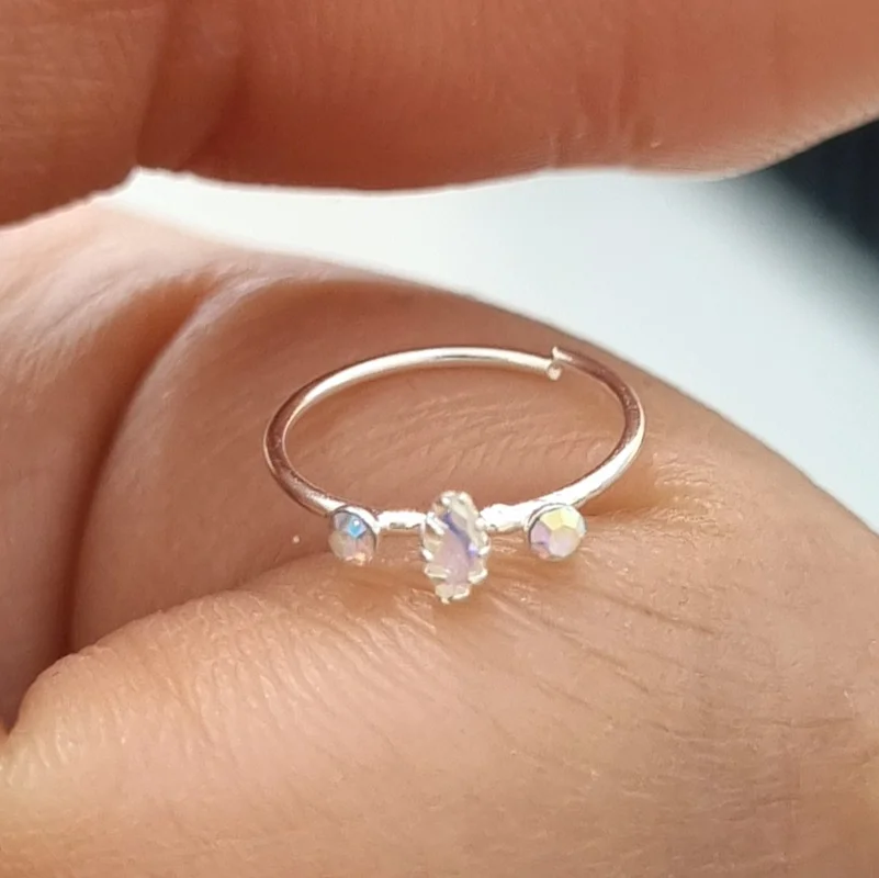 جنس کار نقره 925 است(بالاترین عیار نقره) همراه با آبکاری طلا است.نگین این پرسینگ حلقه ای بینی هفت رنگ است و جلوه ای بسیار زیبا روی بینی دارد.این پرسینگ ظریف است و یکی از زیبا ترین پرسینگ هایی هست که میتونید تجربه استفاده اش رو داشته باشید. مجموعه ما دارای تنوع بسیار زیادی در پرسینگ های حلقه ای و میخی بینی میباشد.هزینه ارسال سفارش های بالا تر از235 هزار تومان رایگان است.