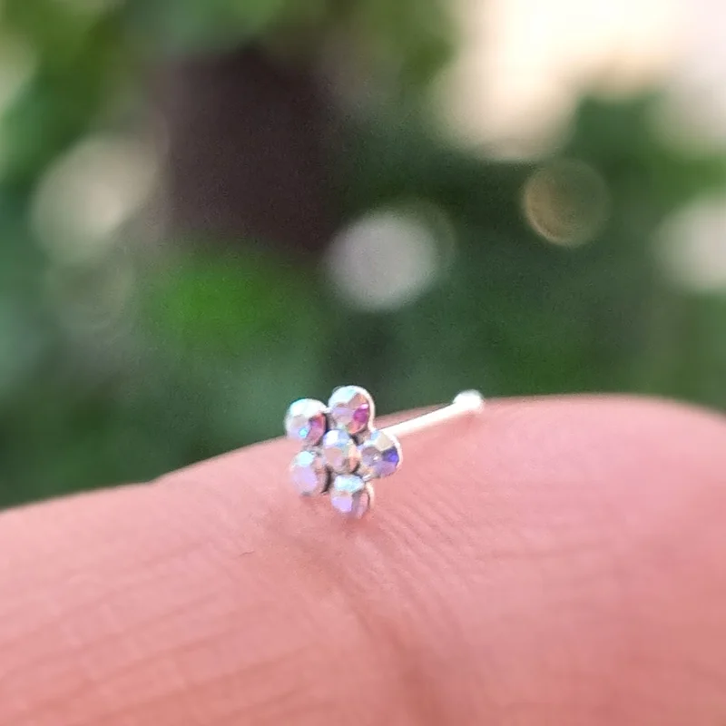 جنس این پیرسینگ نقره عیار 925 است که بالاترین عیار نقره است و فرم کار میخی است طرح گل نگین دار این پیرسینگ بینی به زیبایی روی بینی شما مینشیند. فروشگاه اکسسوری گالری الف دارای تنوع بسیار زیادی پرسینگ بینی و اکسسوری میباشد و برای دیدن تنوع بیشتر میتوانید به پیج و بقیه اسلاید های سایت مراجعه کنید alefgallery_ir.