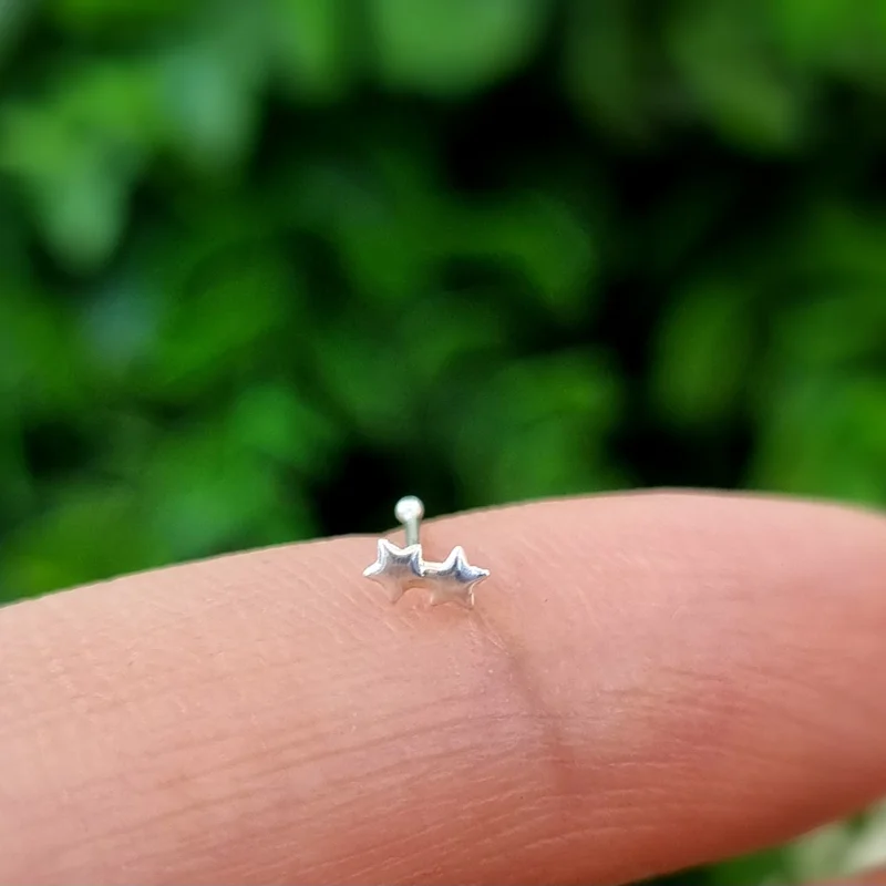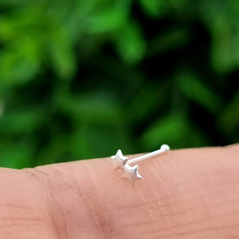 جنس این پیرسینگ بینی نقره عیار 925 است که بالا ترین عیار نقره است و فرم این پیرسینگ میخی است طرح دو ستاره زیبای این پیرسینگ بینی به زیبایی روی بینی شما مینشیند. فروشگاه اکسسوری گالری الف دارای تنوع بسیار زیادی پرسینگ بینی و اکسسوری میباشد و برای دیدن تنوع بیشتر میتوانید به پیج و بقیه اسلاید های سایت مراجعه کنید alefgallery_ir.