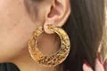 این گوشوار طلاکوب یکی از زیباترین کار ها برای دوست داران گوشوار های بزرگ است که با طرح خاصش جلوه بسیار زیبایی به گوش شما خانم های با سلیقه میدهد. ارسال کار نیز رایگان است. مجموعه ما دارای تنوع بسیار زیبایی در انواع گوشوار میباشد و برای دیدن محصولات دیگر به پیج و اسلاید های دیگر سایت ما سر بزنید alefgallery_ir
