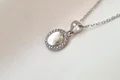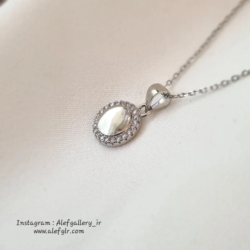 جنس این گردنبند نقره 925 عیار است که بالاترین عیار نقره است. طول زنجیر این گردنبند نقره 45 سانتی متر میباشد. وسط کار اینه ای است و دور کار نگین. کار های نقره را به صورت داعم حتی در مواقع استحمام میتوانید استفاده کنید. این گردنبند نقره کار بینظیری برای کادو دادن است.ارسال این گردنبند رایگان است . برای دیدن تنوع بیشتر از پیج ما دیدن کنید alefgallery_ir