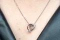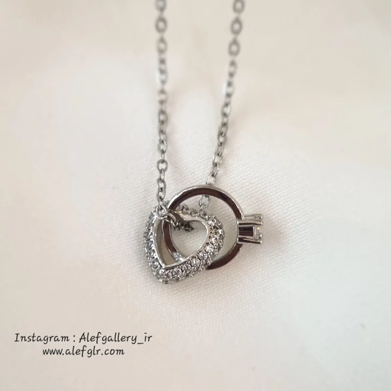 جنس زنجیر این گردنبند تمام استیل و کاملا ضد حساسیت است و طول زنجیر این گردنبند 45 سانتی متر به علاوه 5 سانتی متر زنجیر سایز است.نگین های این گردنبند مخراج کاری شده اند و ریزش ندارند. این گردنبند ظریف یک کادوی بینظیر برای روز ولنتاین است. مجموعه ما دارای تنوع زیادی در گردنبند است. ارسال این گردنبند رایگان است. پیج ما را دنبال داشته باشید alefgallery_ir