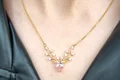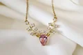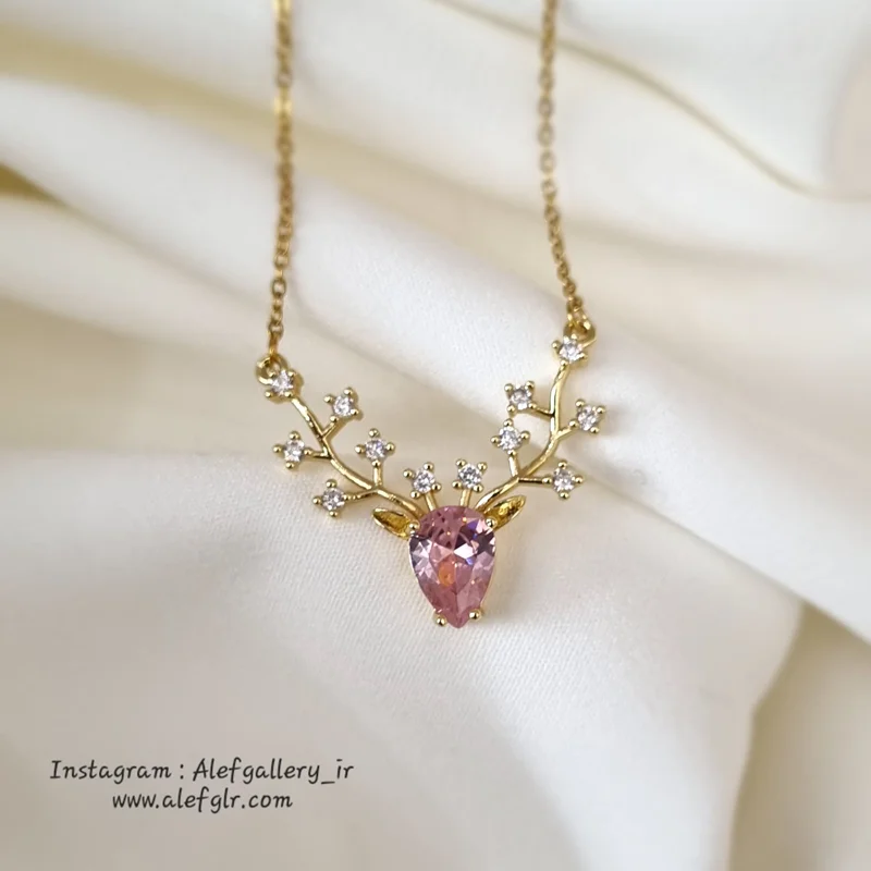 گردنبند شاخ گوزن دارای آب کاری رودیوم میباشد و ضد حساسیت است. طول زنجیر کار 45 سانت به اضافه ی زنجیر سایز 5 سانتی میباشد. طرح شاخ گوزن جزو پر طرفدار ترین طرح های اکسسوری میباشد و ترکیب با اشک صورتی جلوه ی زیبایی به وجودآورده. شاخ گوزن با هلال ماه در ارتباط هست و نماد استقامت، ، لطف، غرایز، بلوغ، بازسازی، و روشنگری معنوی. طرح نگین سواروسکی swarovski.