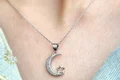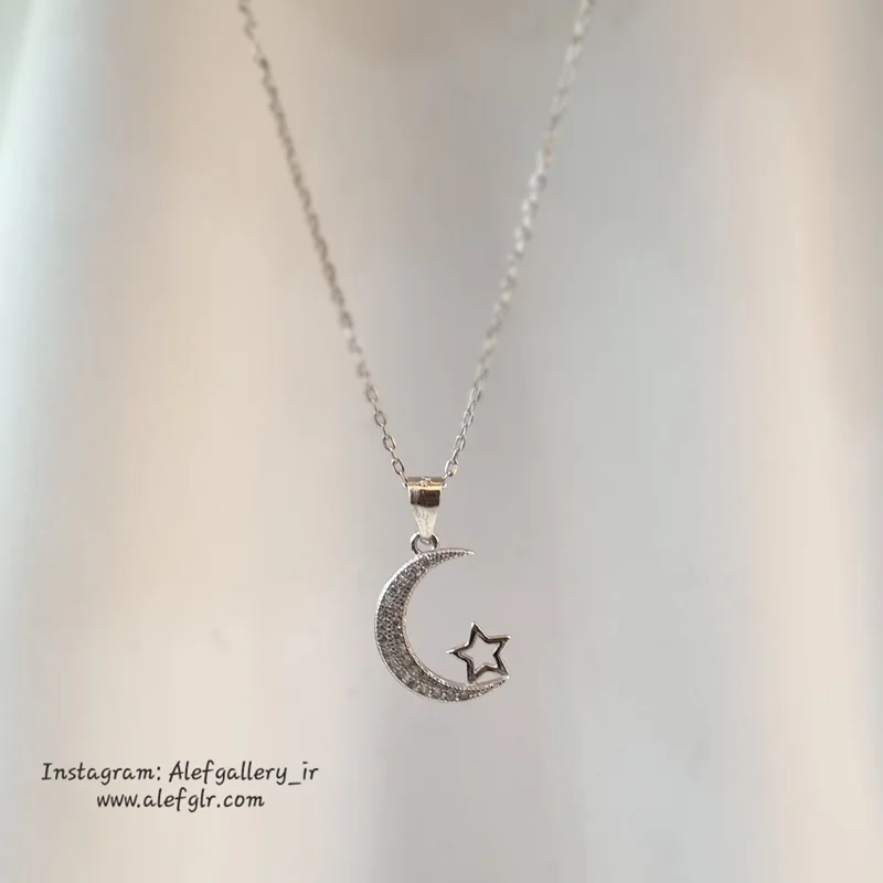 جنس کار نقره 925 عیار است که بالاترین عیار نقره است. طول زنجیبر کار 45 سانت میباشد. نگین های کار شده روی ماه جلوه ی خاصی به کار داده اند و درخشش آن را دوچندان کرده اند. گالری الف در زمینه ی گردنبند های نقره به طور تخصصی فعالیت دارد. کلیه ی کار ها همراه با آبکاری طلای سفید میباشد که باعث عدم حساسیت و ماندگاری بالای رنگ کار میشود.