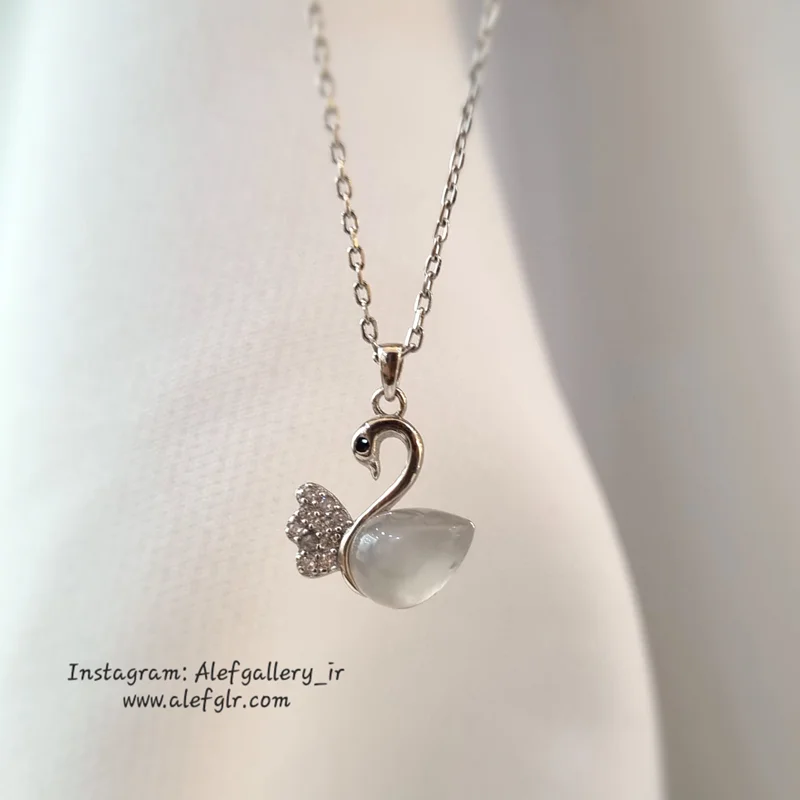 جنس گردنبند نقره 925 عیار است که از بالاترین عیار نقره است. طول زنجیر کار 45 سانت میباشد. قو نماد پاکی, معصومیت, وفاداری و عشق ورزی است. از کار های زیباییست که روی گردن جلوه ی خاصی دارد. ارسال این کار رایگان میباشد. گالری ما به طور تخصصی در زمینه ی گردنبند های نقره فعالیت دارد. کلیه ی کار ها همراه با آبکاری طلای سفید میباشد که باعث عدم حساسیت و ماندگاری بالای رنگ کار میشود.