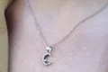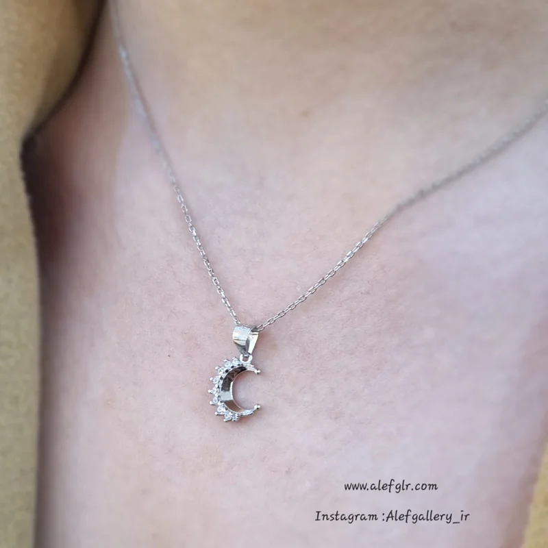 جنس این نیم ست گردنبند و گلگوش نقره عیار 925 است که بالاترین عیار نقره است و همراه با ابکاری طلای سفید میباشد و طول زنحیر گردنبند 45 سانت است. نگین های این گردنبند و گلگوش مخراج کاری شده اند و طرح زیبای ماه ان جلوه زیبایی به گردن شما میدهد. ارسال این نیم ست رایگان است. برای دیدن تنوع بیشتر به پیج و اسلاید های دیگر سایت فروشگاه اکسسوری گالری الف مراجعه کنید alefgallery_ir