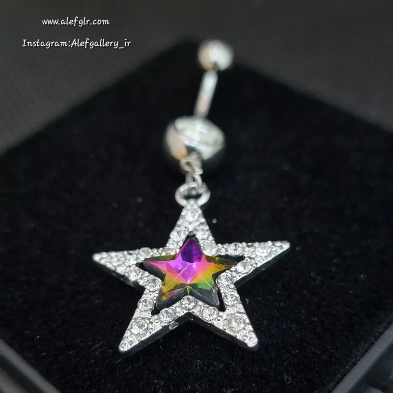 این پیرسینگ ناف کاملا ضد حساسیت میباشد و نگین های روی کار جلوه ای بسیار درخشان و زیبا را به آن داده. ارسال این پیرسینگ ناف رایگان میباشد. برای دیدن تنوع بیشتر به اسلاید های دیگر ما در سایت مراجعه فرمایید و همچنین مارا در اینستاگرام نیز دنبال کنید alefgallery-ir.