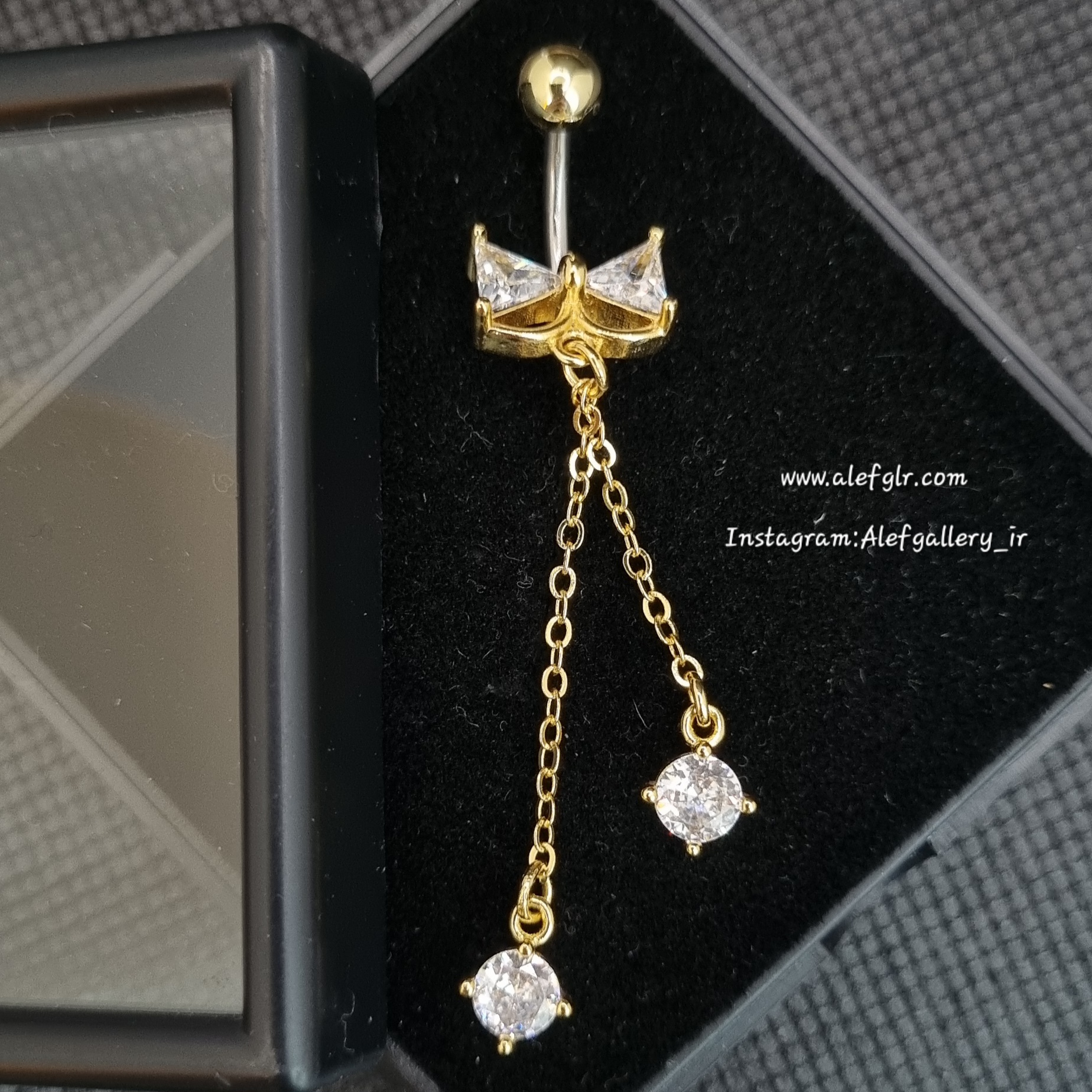 این پیرسینگ ناف کاملا ضد حساسیت میباشد و نگین های روی کار جلوه ای بسیار درخشان و زیبا را به آن داده. نگین کار به صورت مخراج کاری است که همین امر موجب عدم ریزش نگین میشود. برای دیدن تنوع بیشتر به اسلاید های دیگر ما در سایت مراجعه فرمایید و همچنین مارا در اینستاگرام نیز دنبال کنید alefgallery-ir.