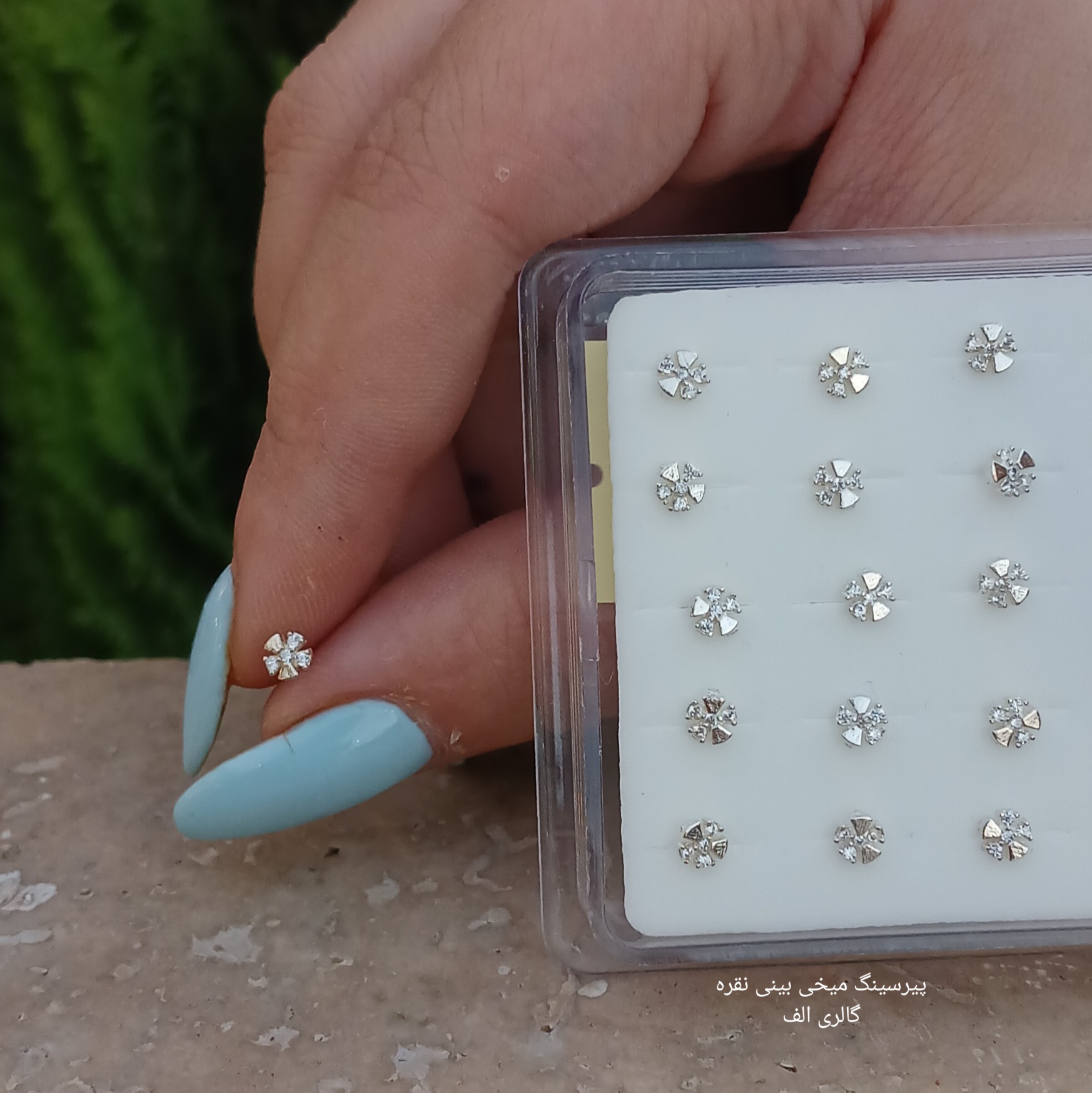 این پیرسینگ بینی نقره دارای استاپ در انتهای کار میباشد