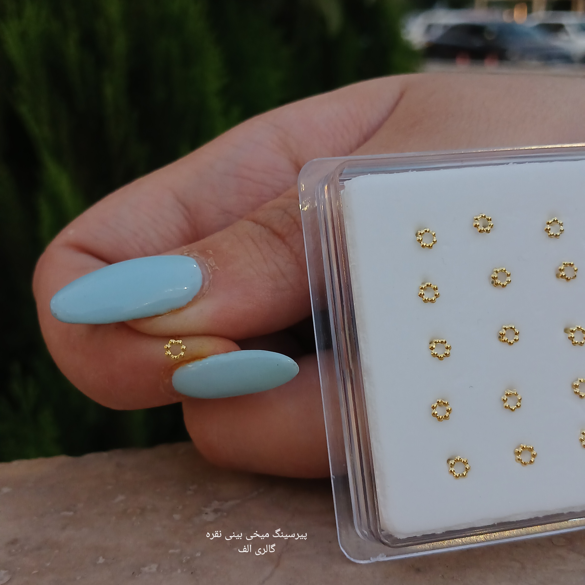 این پیرسینگ بینی نقره دارای استاپ در انتهای کار میباشد