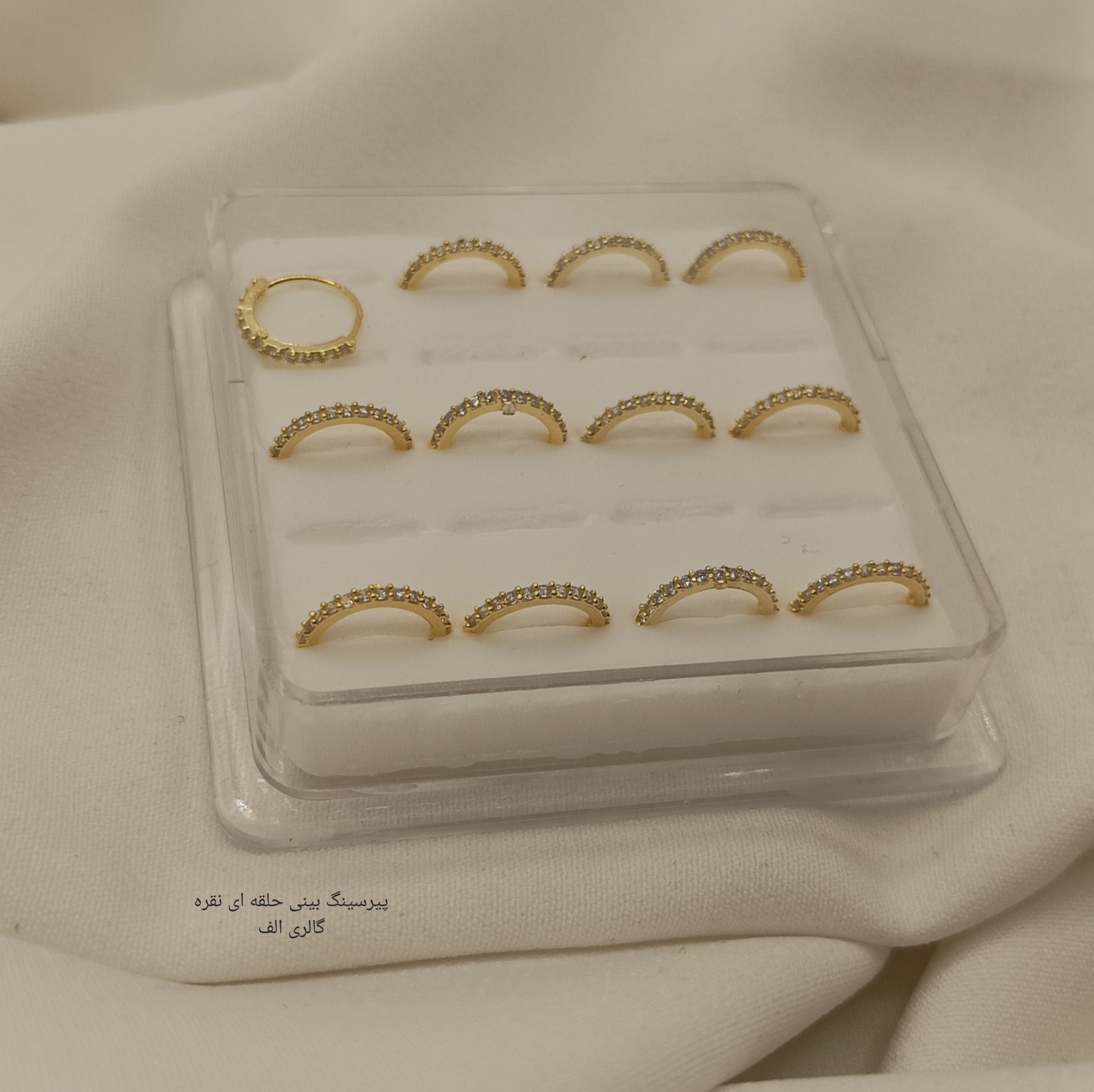 پیرسینگ حلقه ای بینی طلایی نگینی نقره