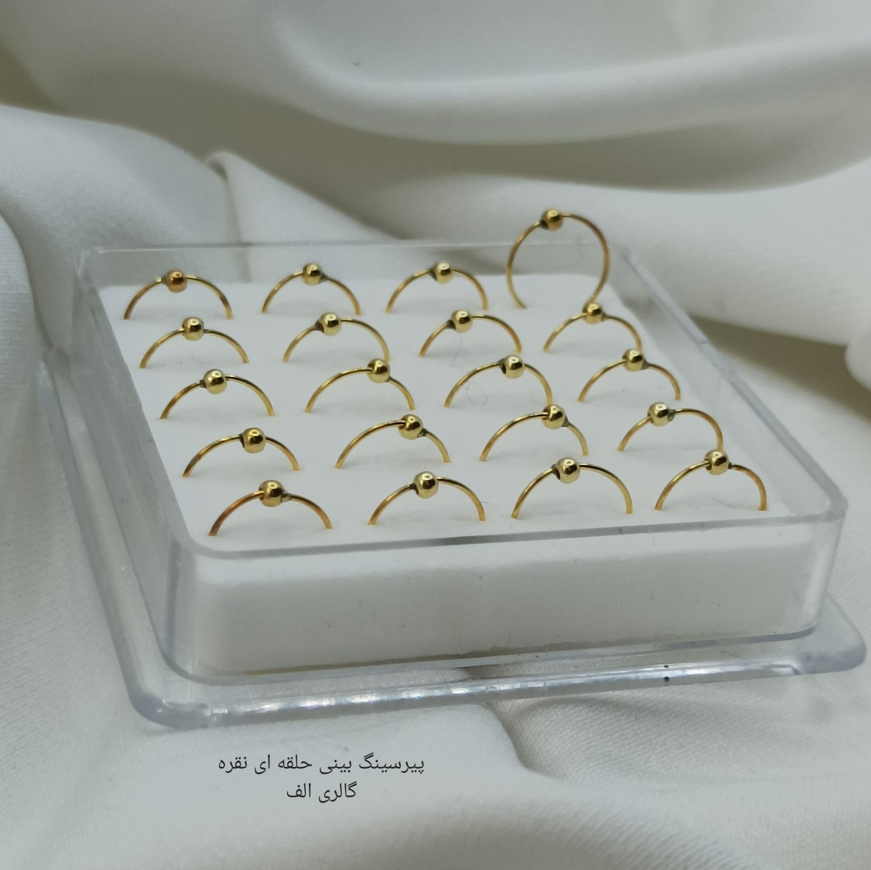 پیرسینگ حلقه ای بینی نقره طلایی گوی