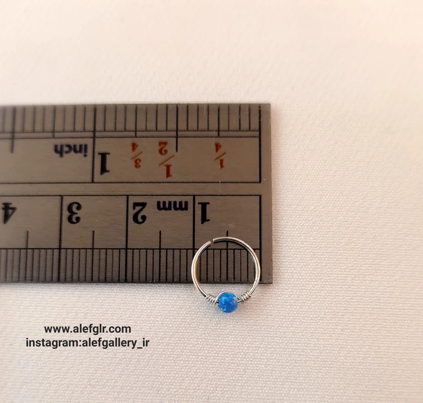 جنس این پیرسینگ بینی نقره 925 عیار است که از بالاترین عیار نقره است و نیز همراه با آبکاری طلا میباشد. پیرسینگ حلقه ای بینی کاری بسیار زیبا است که باید حتما آن را امتحان کنید. نقره بودن این پیرسینگ موجب انعطاف آن شده که باعث میشود راحت تر روی بینی قرار گیرد و اذیت کننده نباشد. این پیرسینگ بینی که با سنگ آپال تزئین شده باعث شده زیبایی آن دوچندان شود. فروشگاه اکسسوری الف منبع پیرسینگ های بینی حلقه ای میباشد و دارای بلاترین تنوع در این زمینه میباشد. همچنین میتوانید مارا در اینستاگرام نیز دنبال کنیدalefgallery-ir.