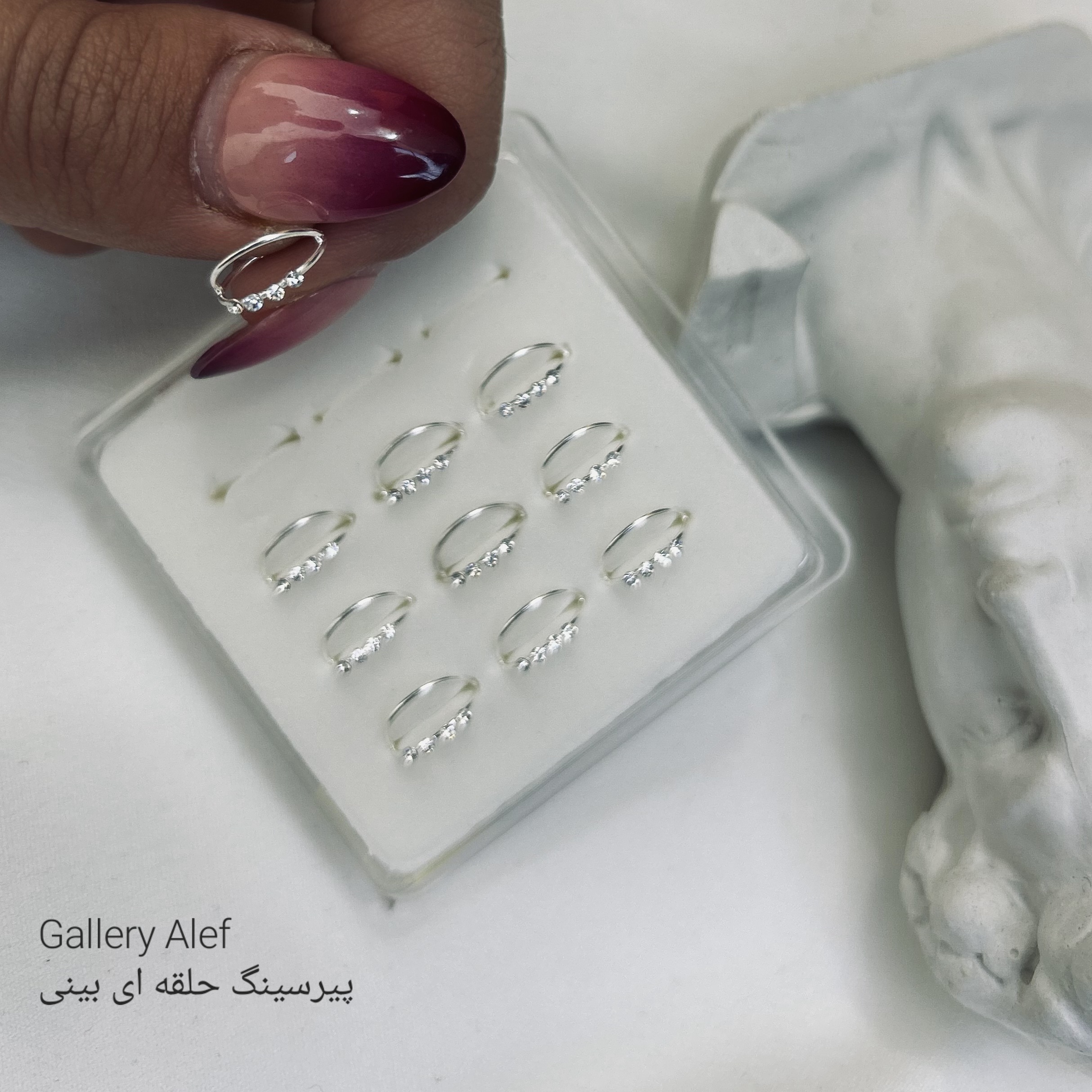 پیرسینگ بینی حلقه ای دو لاین ردیف نگین نقره